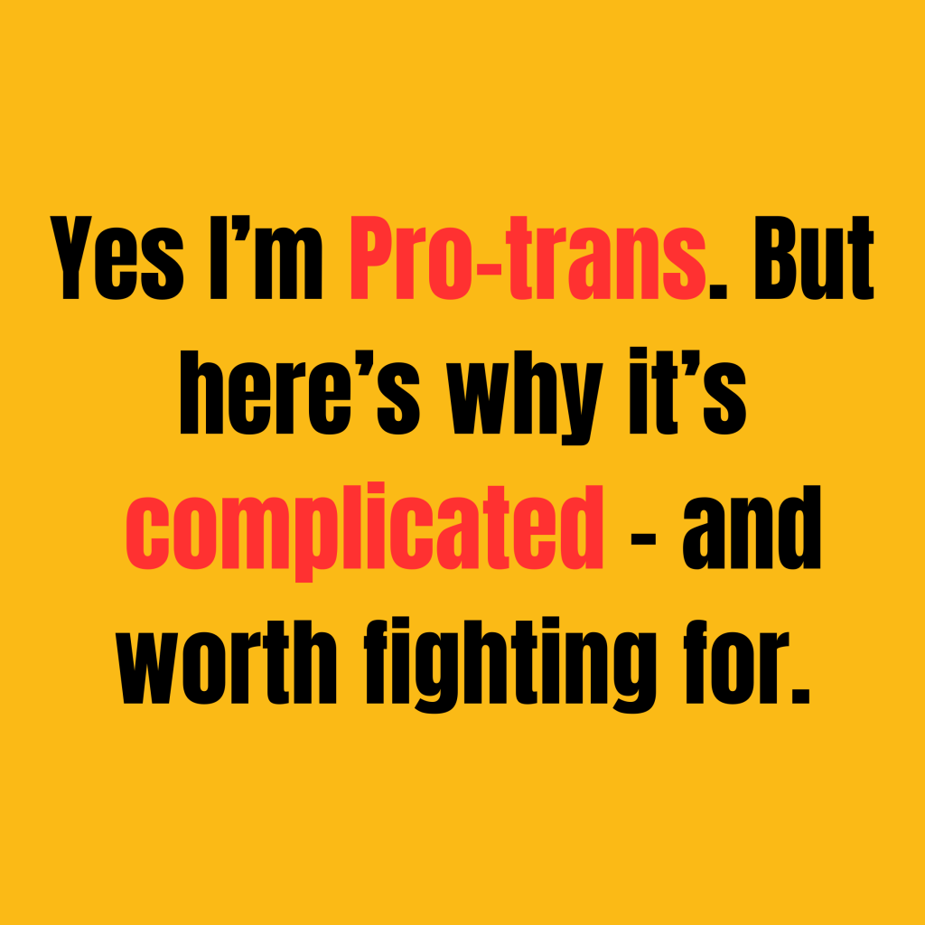 You can support trans liberation and still wrestle with the complexity of gender, identity, and how we’ve all been socialised. But one thing has to be non-negotiable: trans people deserve to live freely, fully, and safely – without compromise.